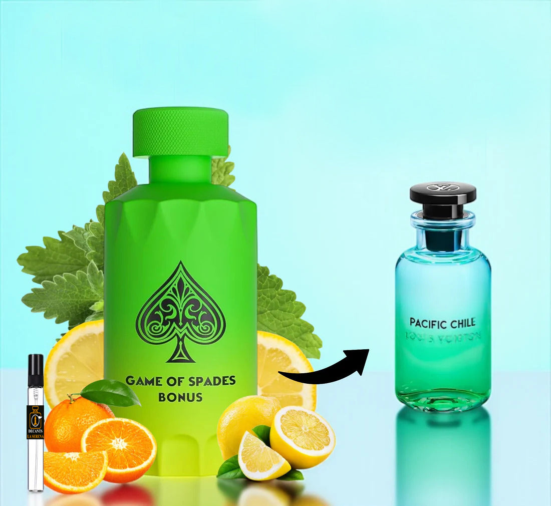 Game of Spades Bonus de Jo Milano Paris es una fragancia que encapsula el arte de la seducción aromática. Desde el primer instante, una explosión cítrica y refrescante despierta los sentidos: limón, naranja, citron y menta se mezclan con el toque especiado del coriandro y la dulzura vibrante de la grosella negra. En el corazón, la delicadeza de la rosa de mayo se funde con el dulzor jugoso del albaricoque, mientras el albahaca y las semillas de zanahoria aportan un carácter herbal sofisticado. Finalmente, las notas de fondo revelan una sensualidad cálida y adictiva con ambreta, higo y dátiles.