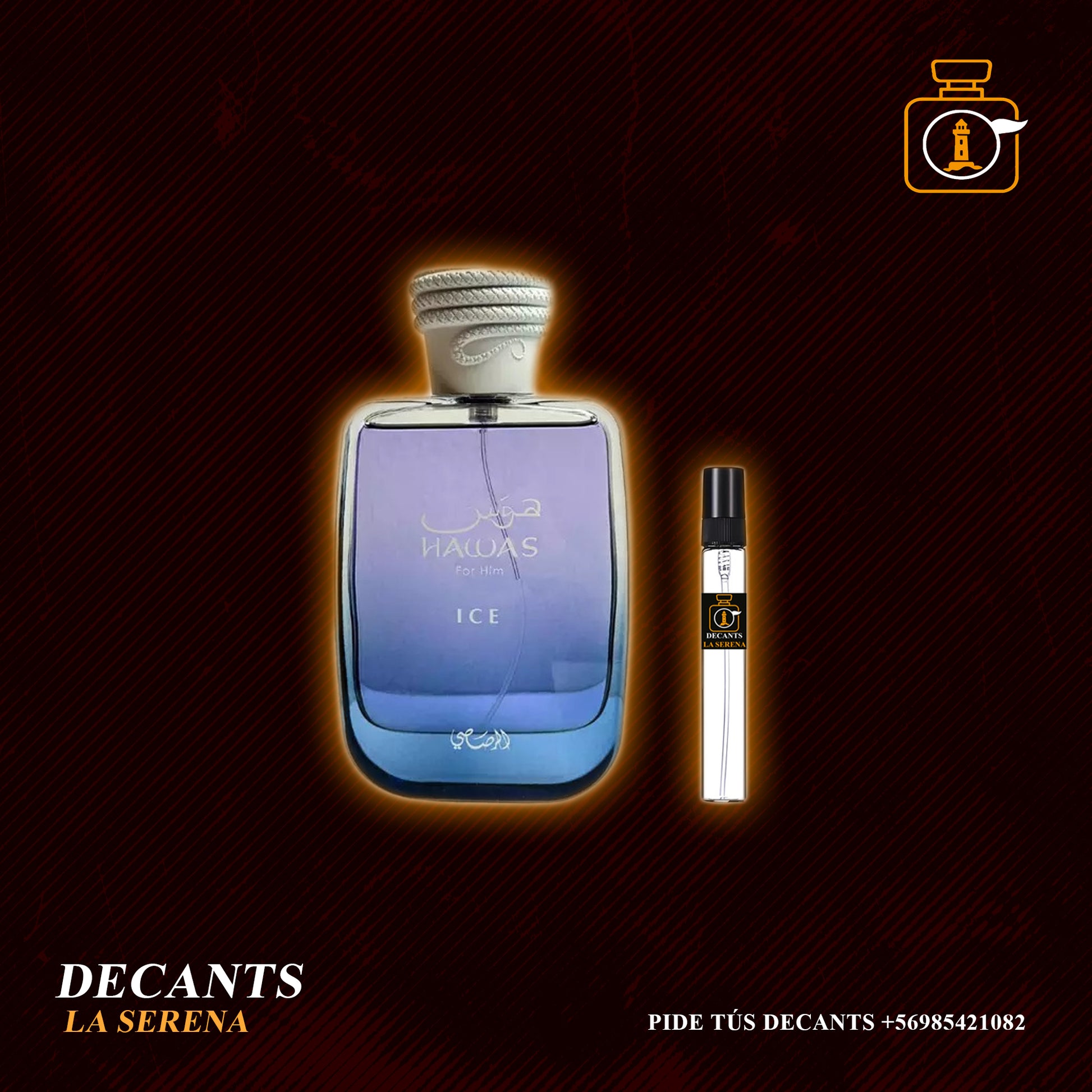 Huele a una manzana verde helada con un toque de ciruela dulce y un fondo amaderado limpio y almizclado. Se describe como un aroma delicioso, atractivo y divertido, que evoca la sensación de aire fresco y limpio. Es una fragancia masculina lanzada en 2023. Se destaca como una versión refrescante y mejorada de la fragancia original Hawas. Su presentación se diferencia por una tapa blanca metalizada y un empaque de color azul también metalizado. Hawas Ice pertenece a la familia olfativa acuática frutal y es ideal para climas cálidos.